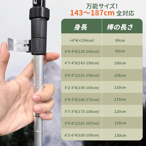 Weedayの5段折りたたみ式トレッキングポールは、身長143cmから187cmまでの幅広いユーザーに対応できる調整可能な設計が特徴です。