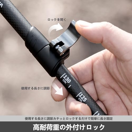 この設計により、登山やハイキングの際に自分の体格や地形に合わせてポールの長さを素早く最適化できます。