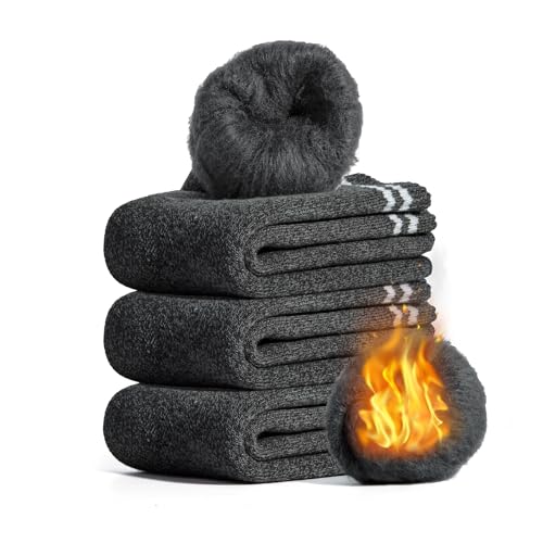 [konciwa] 靴下 レディース 冬 厚手【極暖38℃恒温・極厚裏パイル・ウール素材・360°蓄熱】 ソックス ウールソックス 防寒 保温 消臭 耐久性 伸縮性 室内 アウトドア 登山 キャンプ 24-28㎝ (1#ブラック*3) 最後 画像