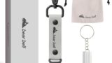 コンパクトなサイズと軽量設計でありながら丈夫な真鍮製で、レザーストラップやクマカラビナがセットされているため、リュックやベルトに簡単に装着可能です。
