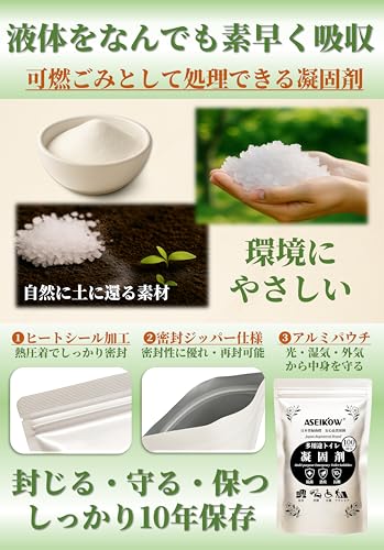これらのポイントが、一般的なトイレ凝固剤との差異を明確にし、ASEIKOW®を選ぶ理由となっています。