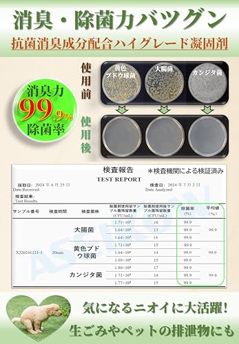 • 強力な消臭・抗菌効果:排泄物の嫌な臭いを抑え、菌の繁殖を抑制するため衛生的です。
