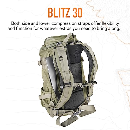 ミステリーランチのブリッツ30フォレスト L/XLは、タフな生地と頑丈なハードウェアを採用し、厳しい登山環境に耐えうる設計です。