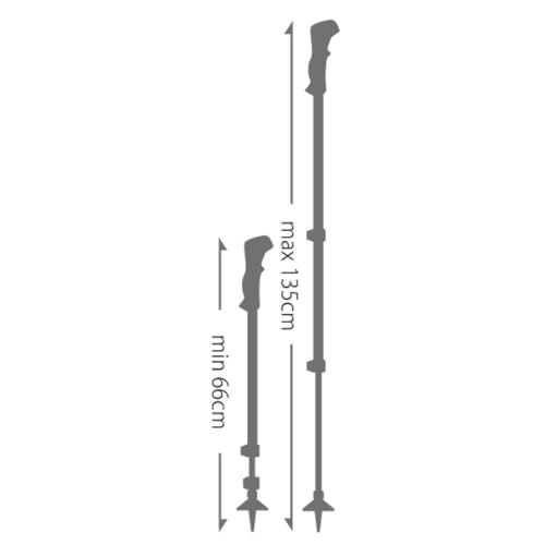 ジャーニーライトは66cmから135cmまで伸縮可能で、体格や登山スタイルに合わせて細かく調整できます。