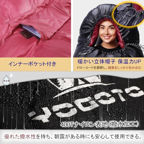 - 登山・キャンプ:軽量コンパクトな収納性(約20×38cm)で持ち運びやすく、マミー型ながら封筒型シュラフとして快適。