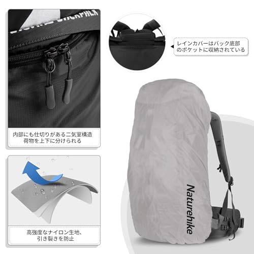 Naturehikeの大容量バックパックは、撥水性ナイロン生地と防水レインカバーにより、急な天気変化でも安心して使用できます。