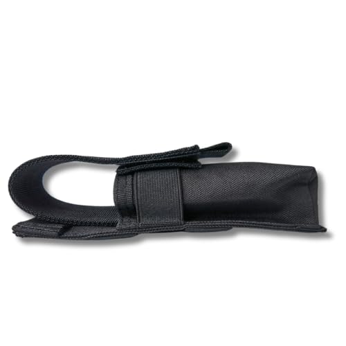 この専用ホルスターケースは、ベルトの幅を自由に調節でき、直径35mmから53mm、長さ17cmから24cmの熊撃退スプレーにフィットします。
