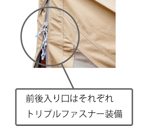 さらに、前室付きのコンフォートタイプで、靴置きやギアの収納スペースが確保できるため、快適なキャンプ環境を演出します。