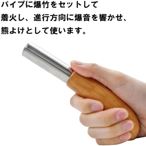 新潟県三条市で製造され、耐久性の高いステンレスと木材を組み合わせたパイプに爆竹をセットし、爆発音によって熊に接近を警告。
