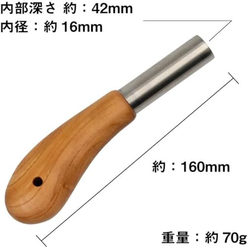 手にフィットする人間工学的デザインの木製取っ手が、長時間の使用でも疲れにくい点が特徴です。
